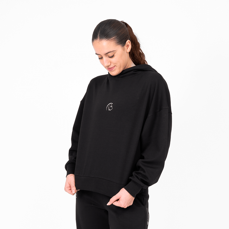 Sudadera oversize de mujer en tejido interlock, ligero y térmico, diseñada para moverte con libertad dentro y fuera del entrenamiento. Su tacto suave, resistencia superior y estética urbana la convierten en una prenda versátil que equilibra rendimiento, estilo y confort elevado